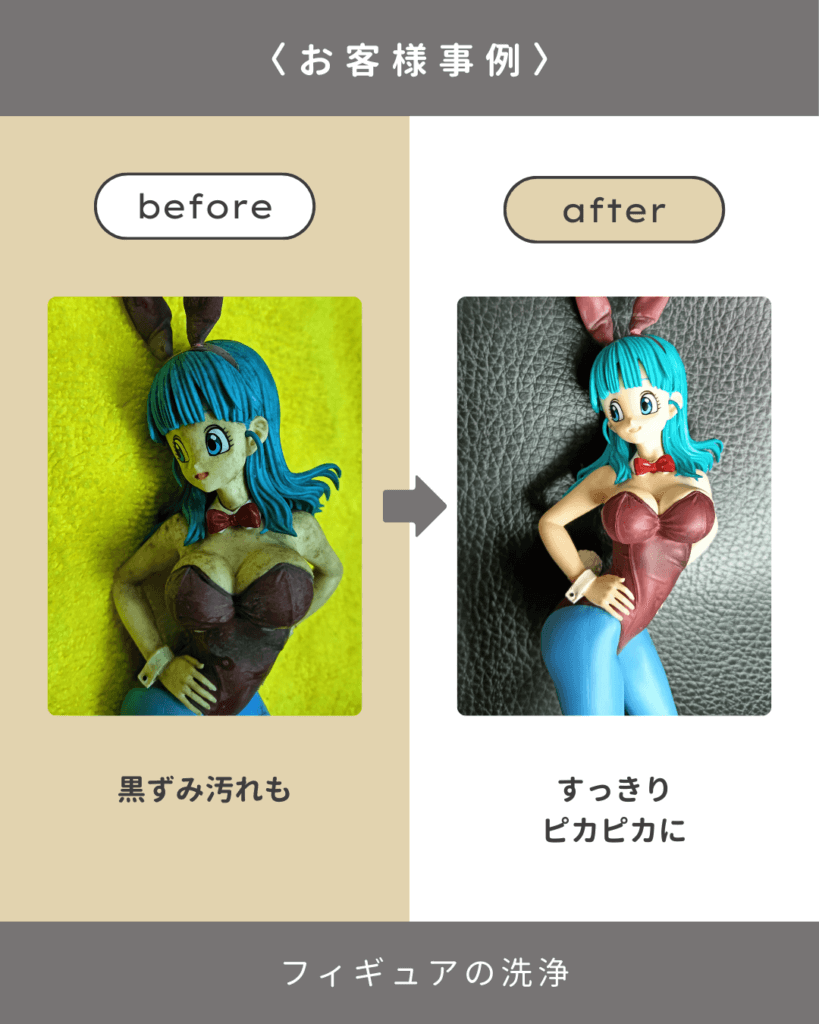 お客様からも「新品のようになった!」「また大切に飾ります」と、大変喜んでいただけました。
